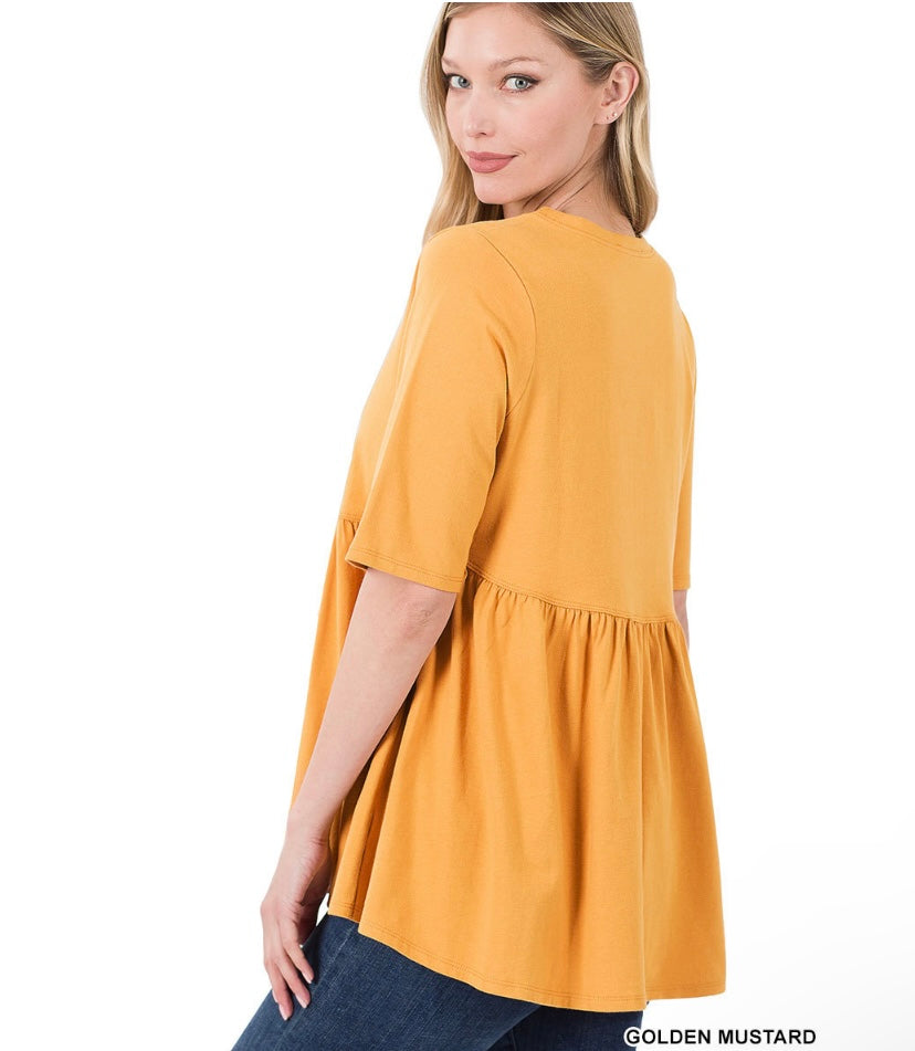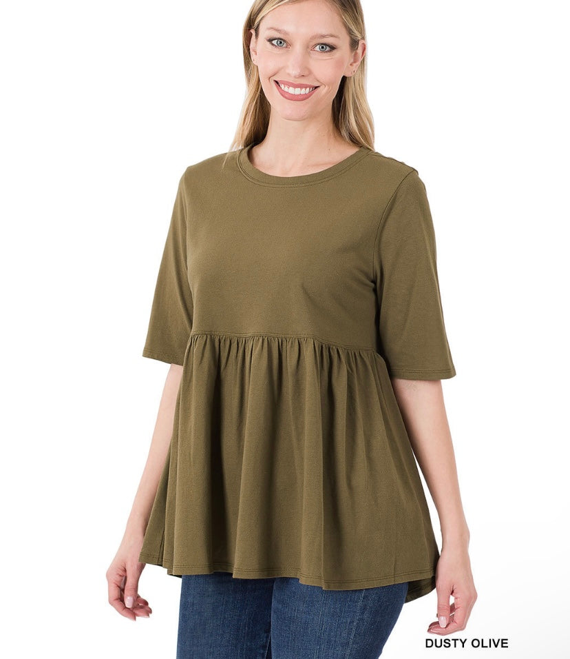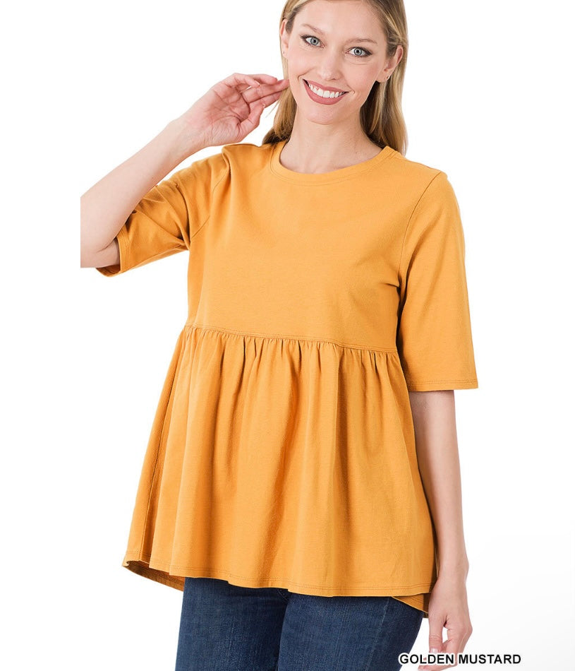 HALF SLEEVE EMPIRE WAIST SHIRRING TOP