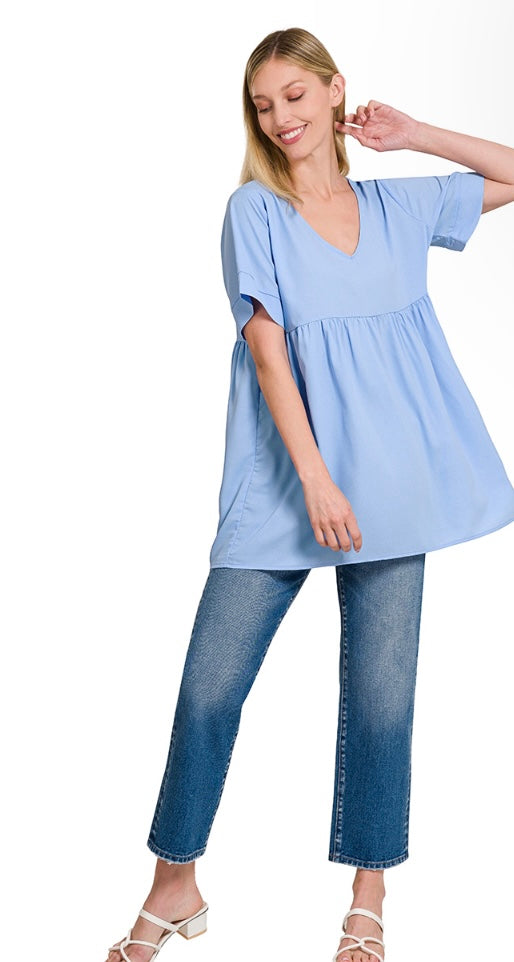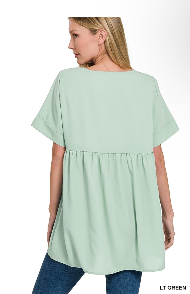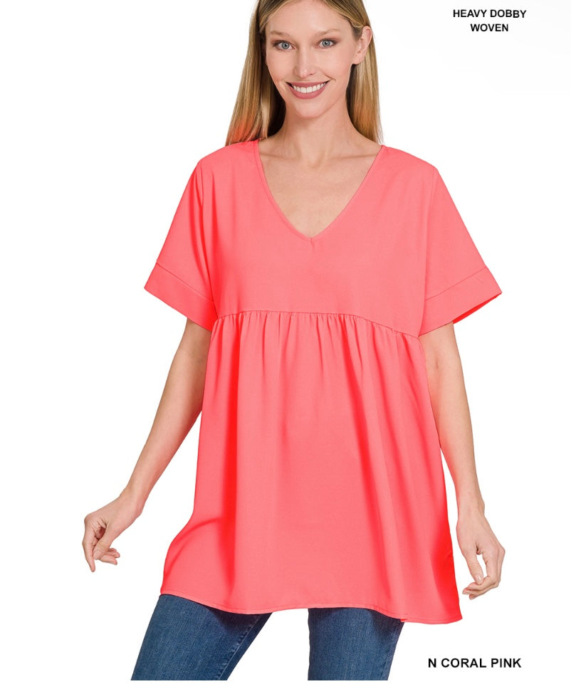 WOVEN HEAVY DOBBY EMPIRE WAIST SHIRRING TOP