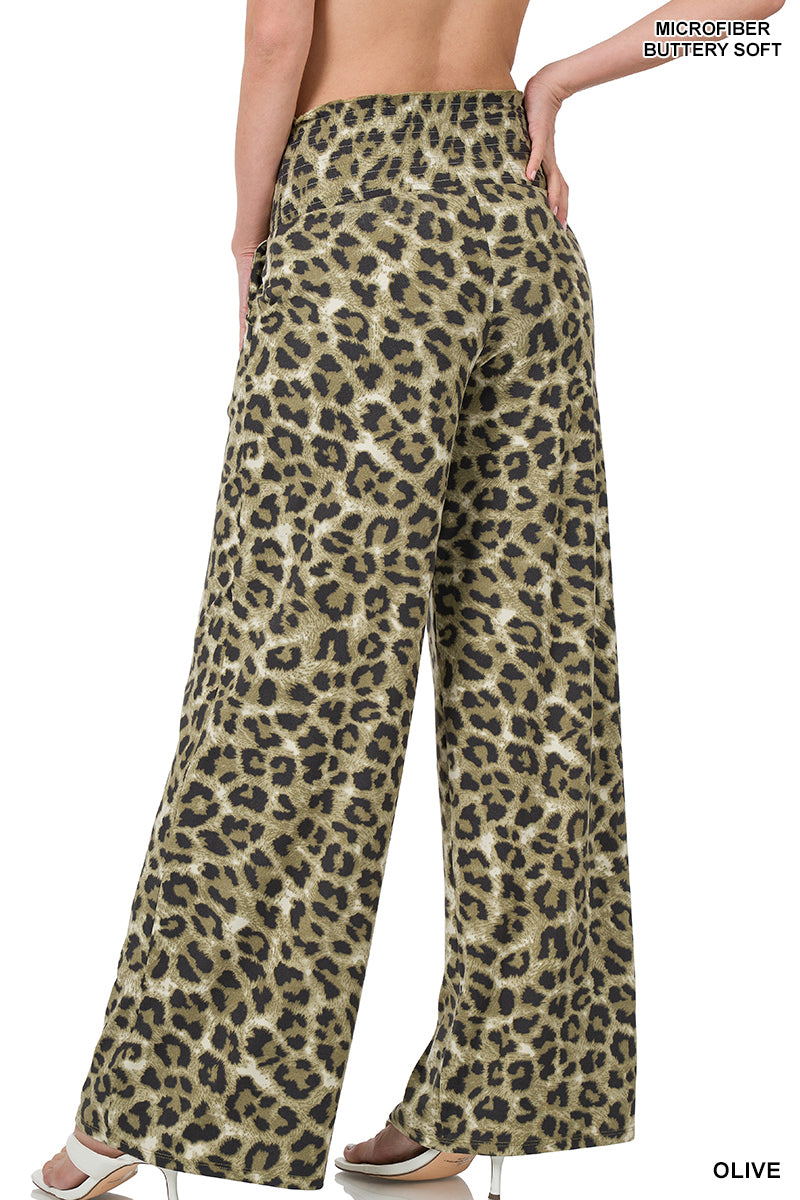 BRUSHED DTY LEOPARD SMOCKED WAISTBAND LOUNGE PANTS