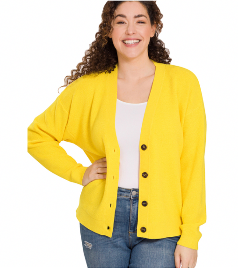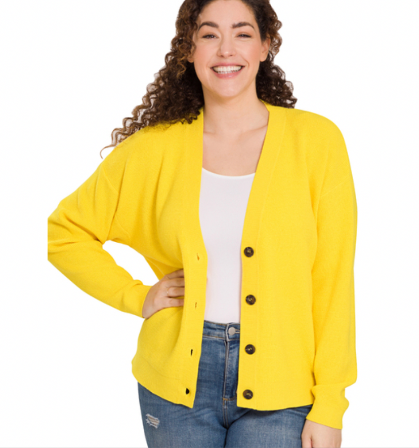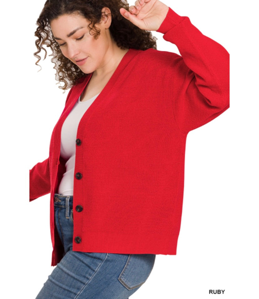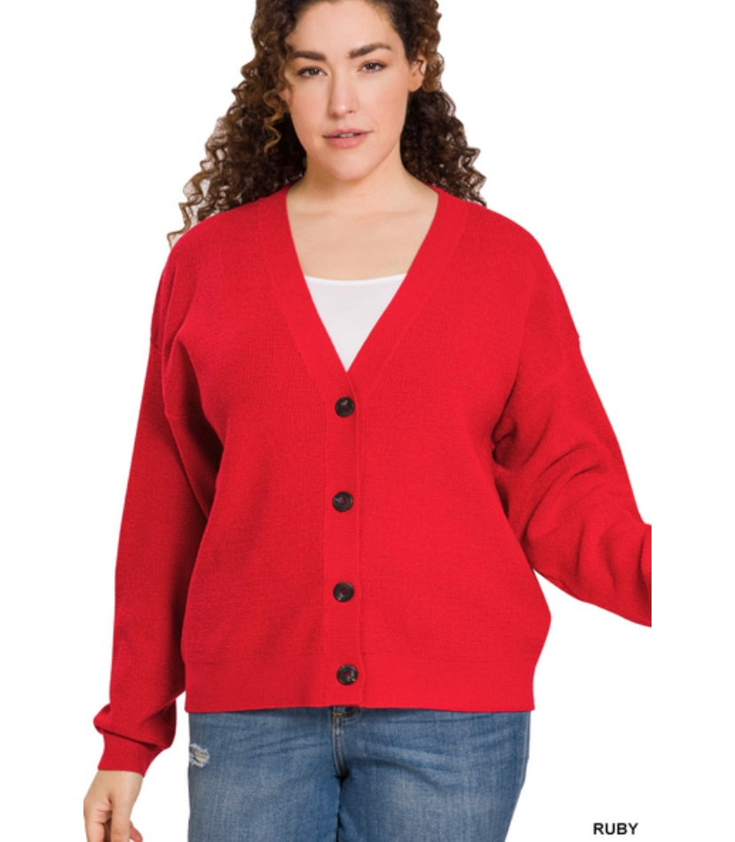 PLUS DROP SHOULDER BUTTON FRONT VISCOSE SWEATER CARDIGAN