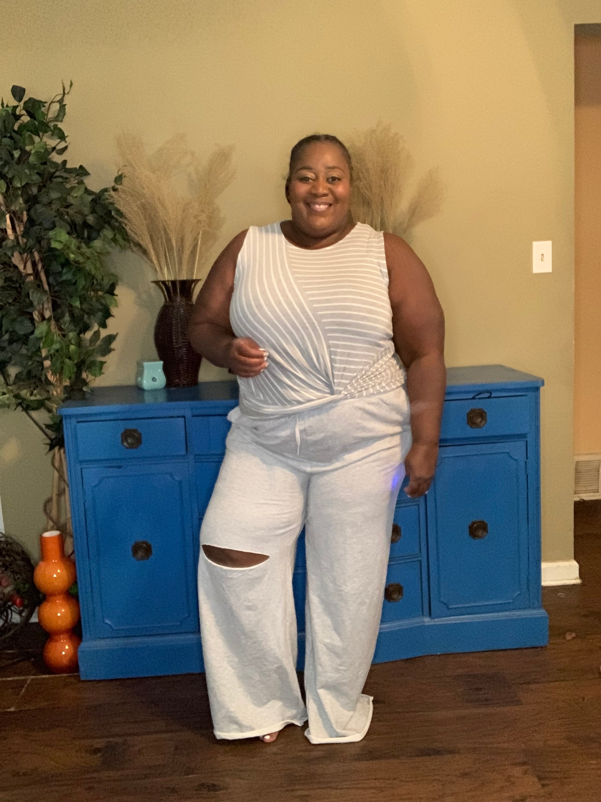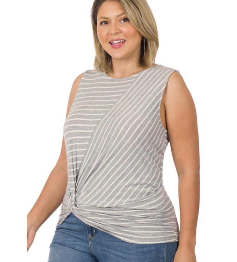 PLUS STRIPED KNOT-FRONT SLEEVELESS TOP