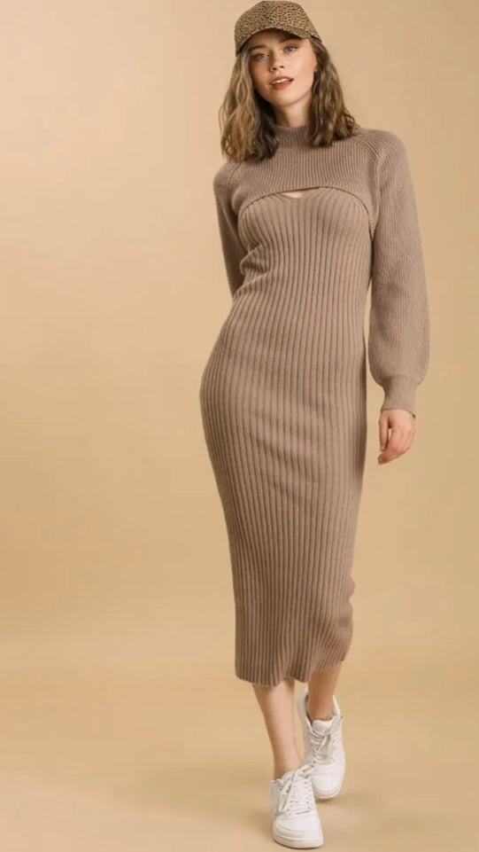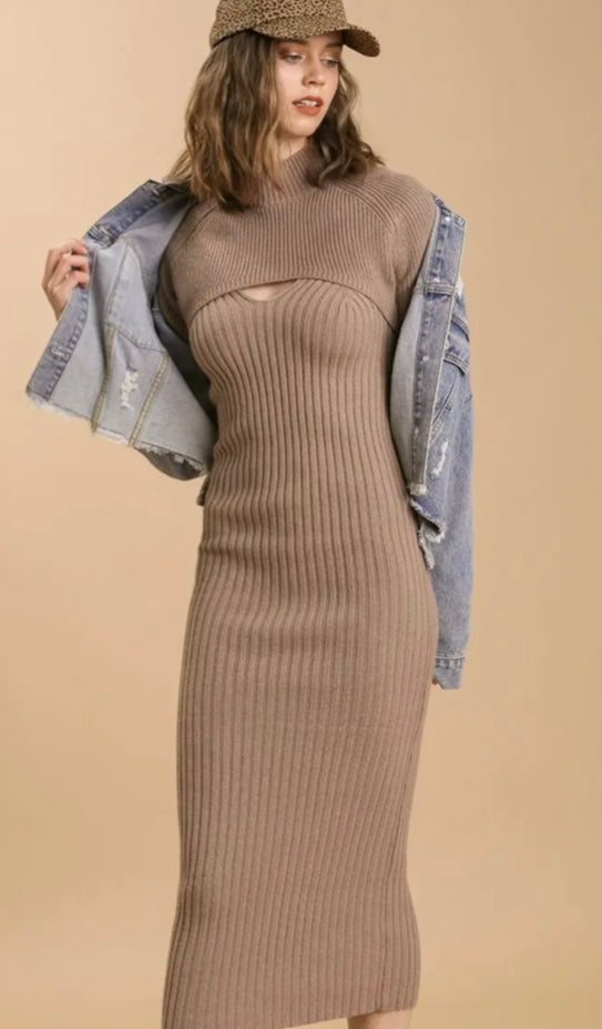 Knit V-Neck Maxi Dress with Cropped Pullover Sweater