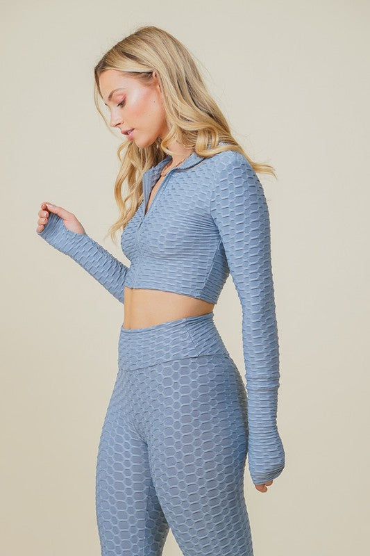 ELASTIC WAIST HONEYCOMB LEGGING PANTS W/ BUTT RUCHING DETAIL